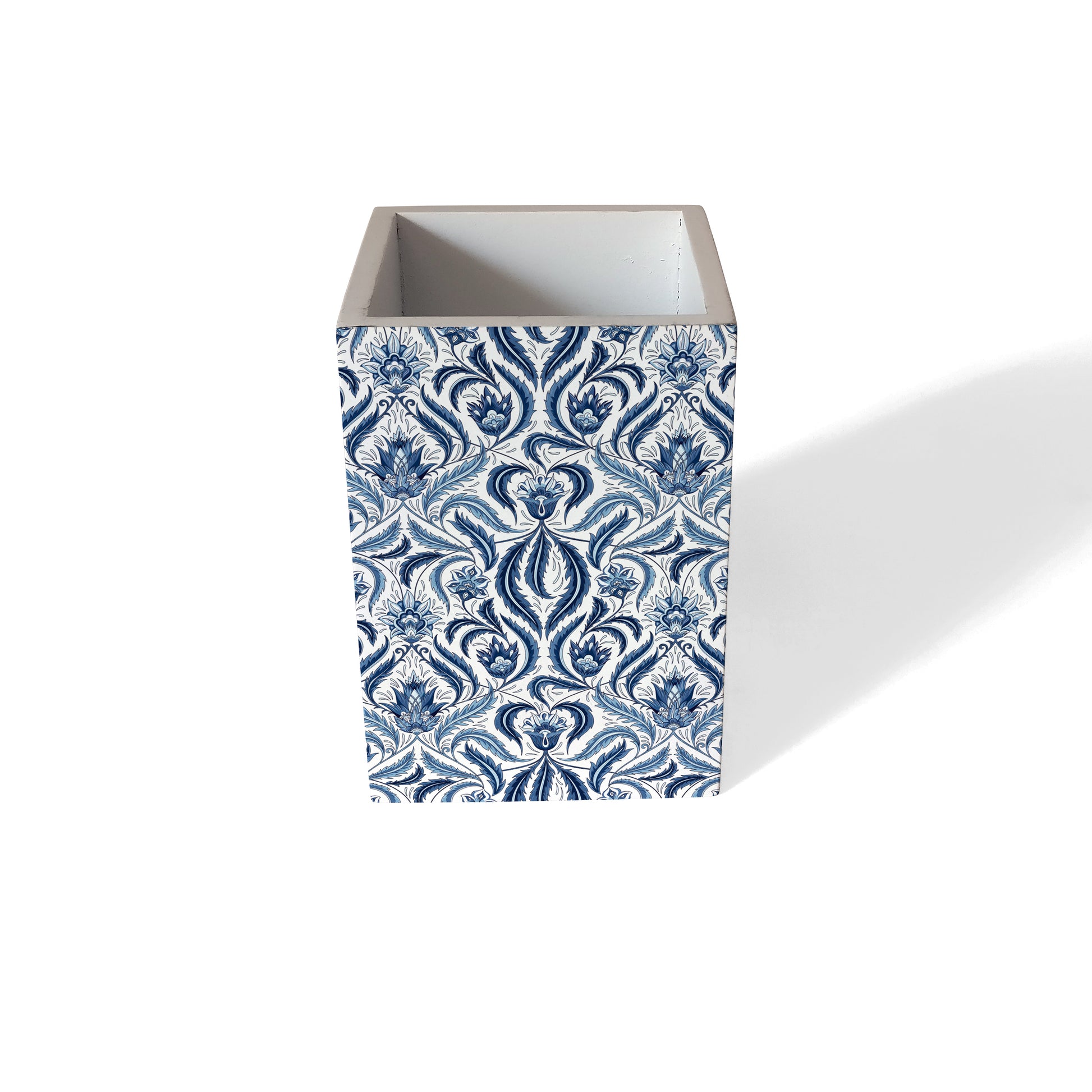 - NICE SIZE: 2.75" x 2.75" x 4" ht. (In cms. 7 x 7 x 10 Ht.). It can hold lots of pens, pencils, makeup brushes, remotes and keeps everything pretty organized. This table accessory will dress up your desk and office in a simple and elegant way.
