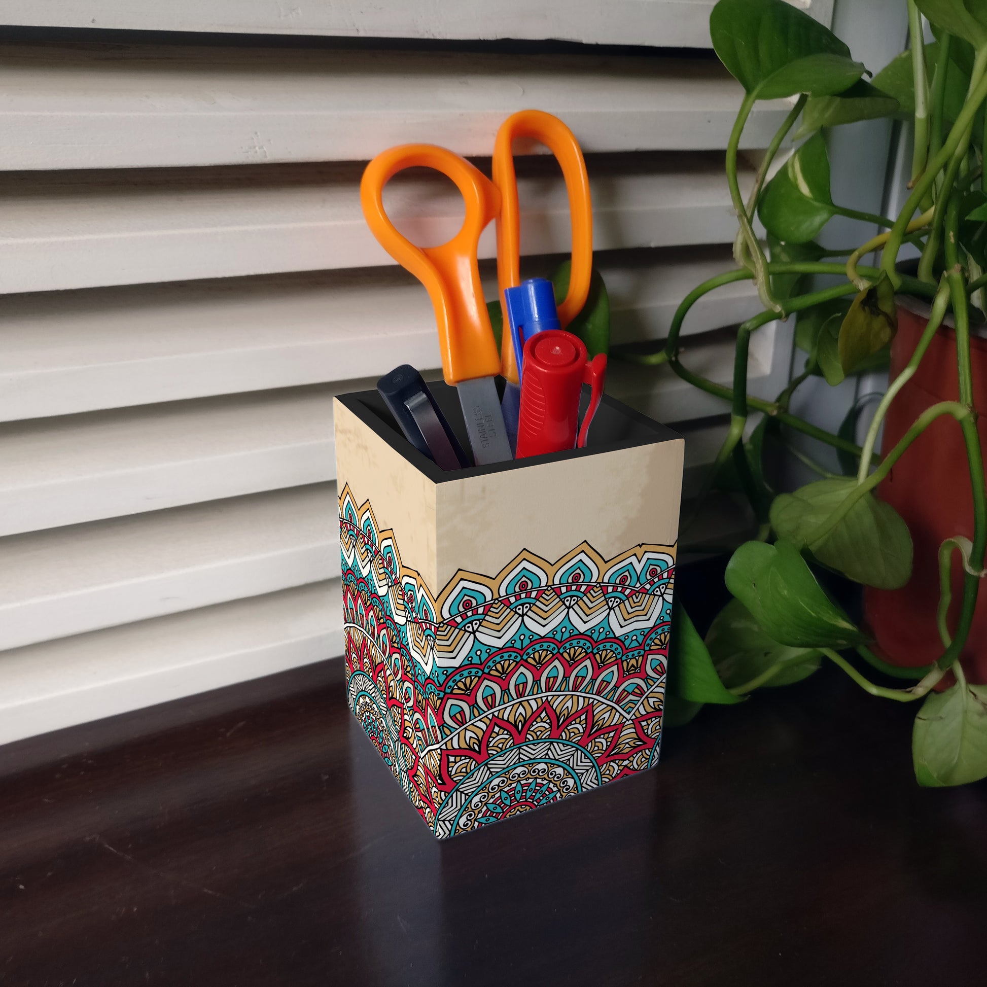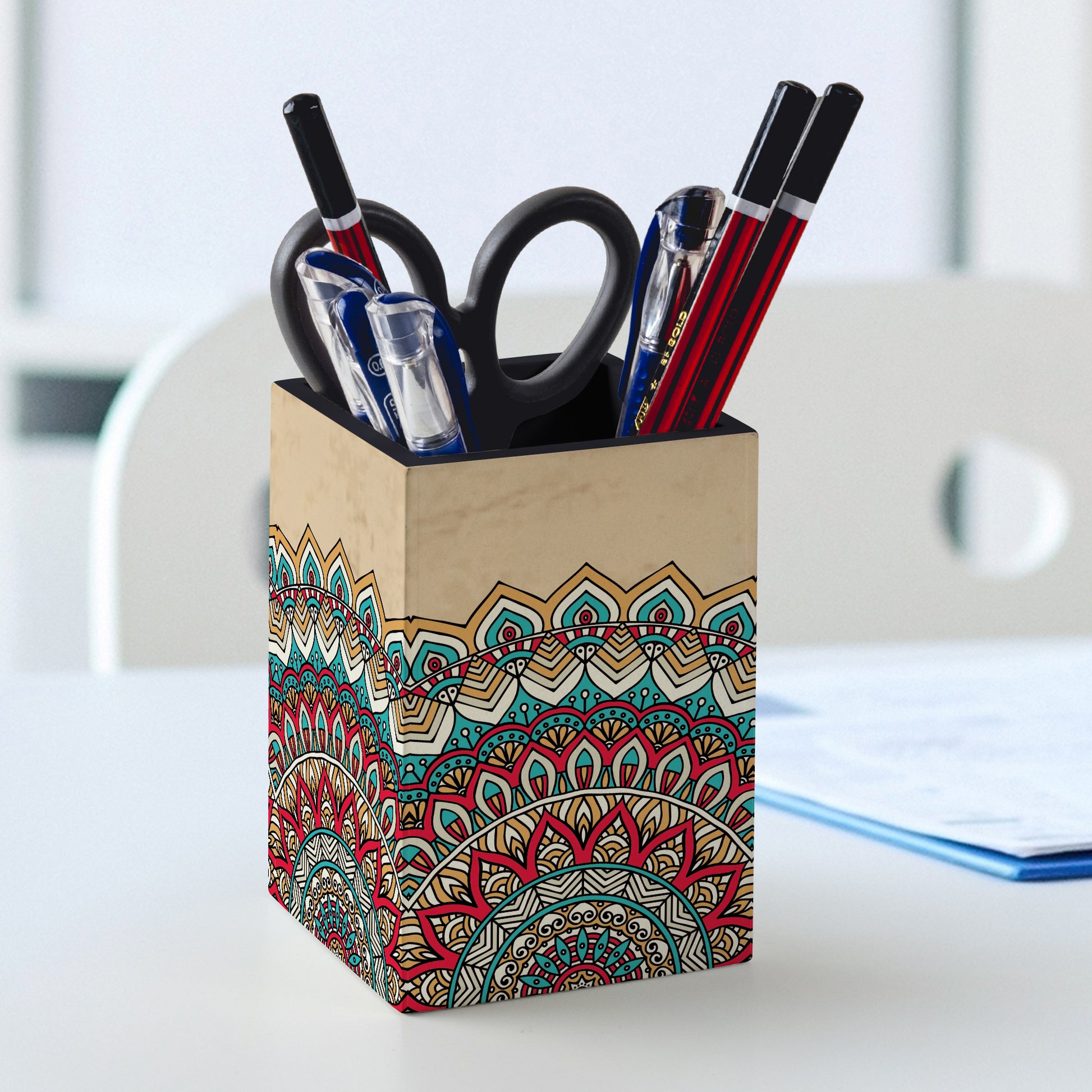 - ECO FRIENDLY MATERIAL: This Pencil Holder is made of Engineered Wood. The colour and design of this office stationery item is vibrant and it make a unique desk organiser.
